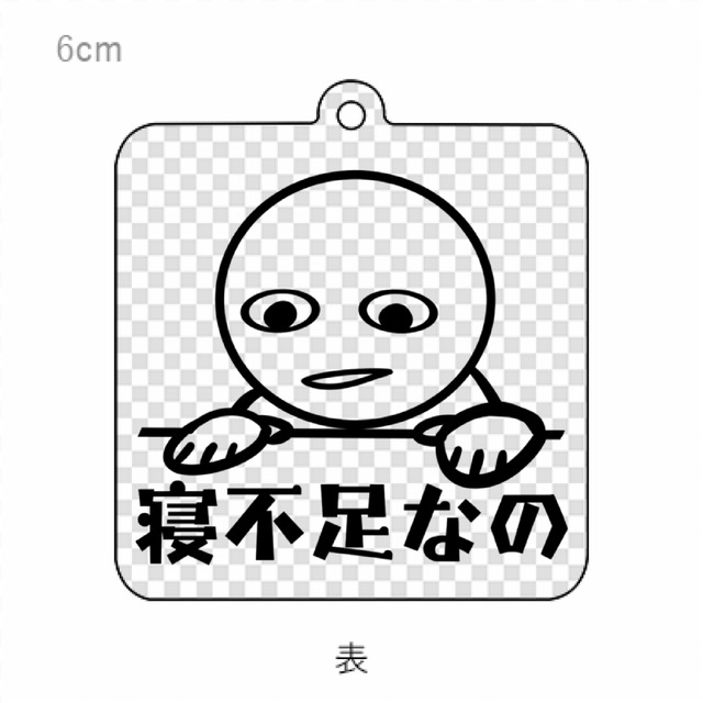 寝不足をアピールできるキーホルダーです。 これを身に着けていればあなたが寝不足だという事を証明できるでしょう! この商品画像はオリジナルプリント.jpで生成したイメージです。実物とは異なる場合がありますのでご注意ください。